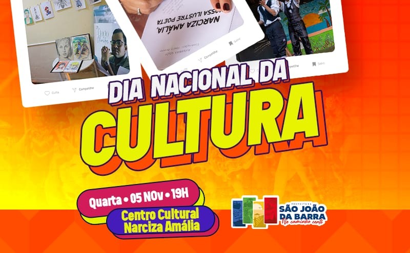 Em comemoração ao Dia Nacional da Cultura, celebrado nesta quarta-feira (5), São João da Barra promove um evento especial no Centro Cultural Narcisa Amália, a partir das 19h. A programação, organizada pela Secretaria Municipal de Cultura, é aberta ao público e contará com lançamentos de obras literárias, apresentações culturais e a posse da nova diretoria do Conselho Municipal de Cultura.